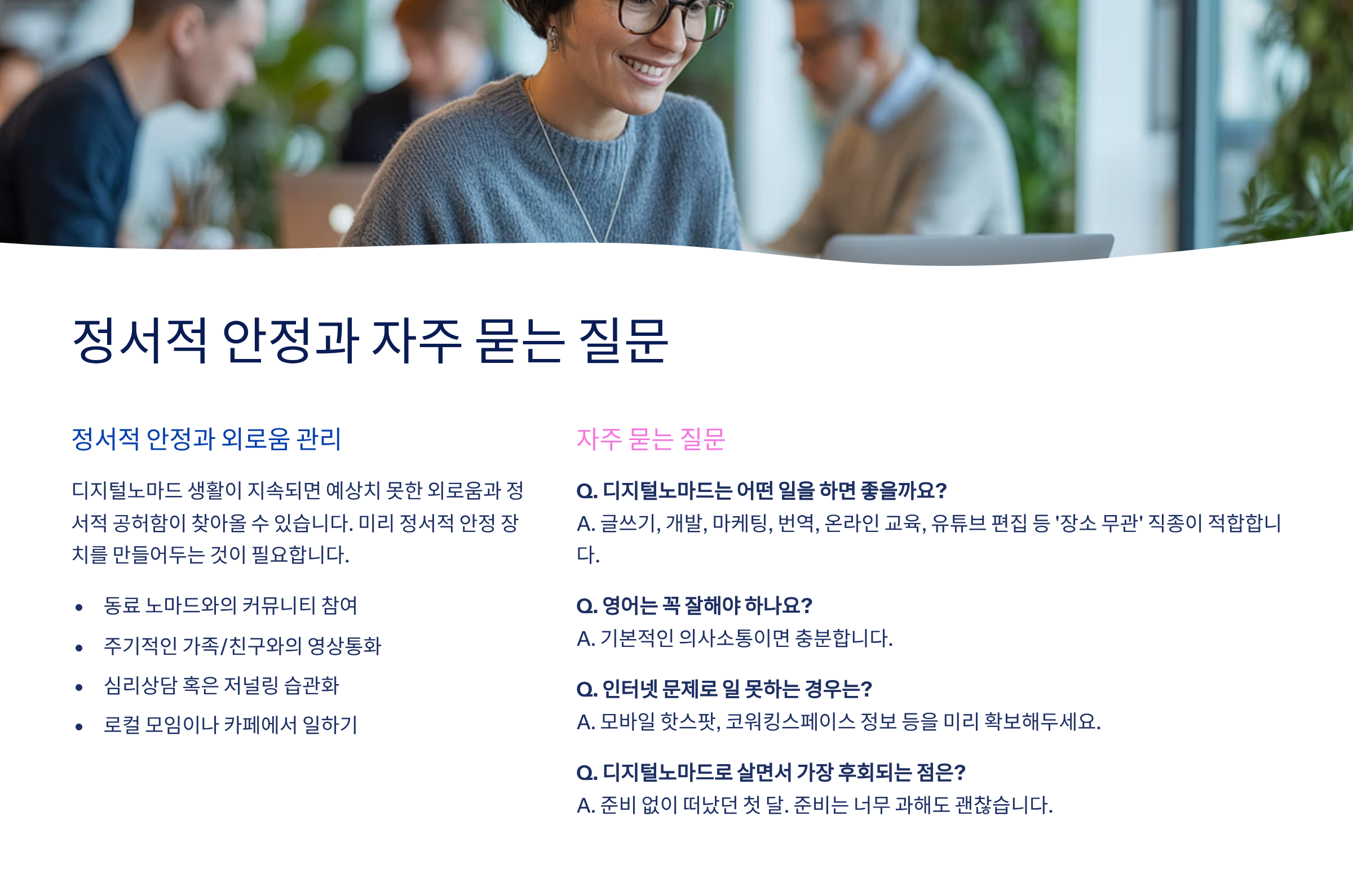 - 동료 노마드와의 커뮤니티 참여 (예: Nomadlist)