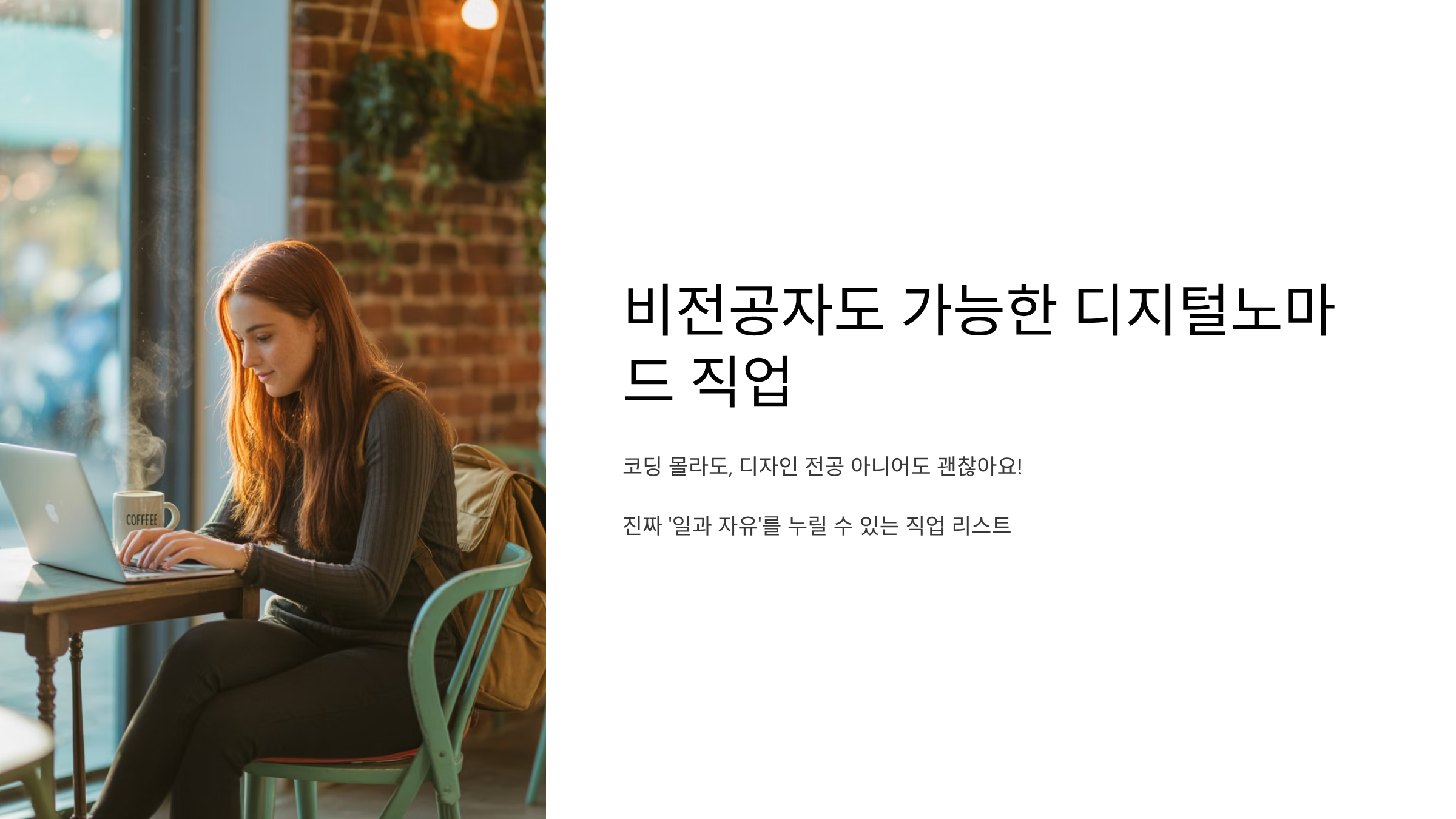 코딩 몰라도, 디자인 전공 아니어도 괜찮아요! 지금부터 진짜 '일과 자유'를 누릴 수 있는 디지털노마드 직업 리스트 공개합니다.