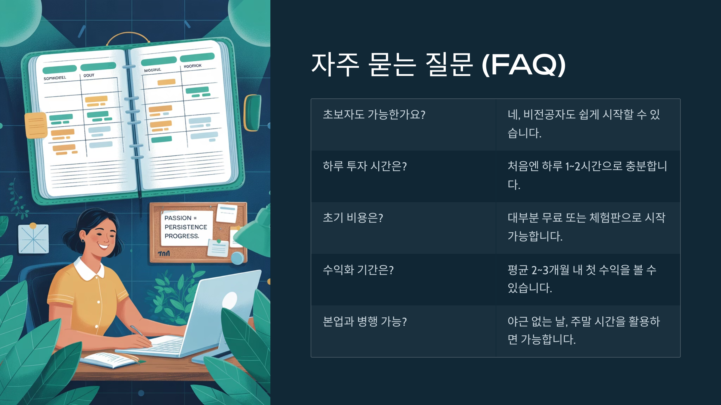 사람마다 다르지만, 평균적으로 2~3개월 내 첫 수익을 보는 경우가 많습니다.