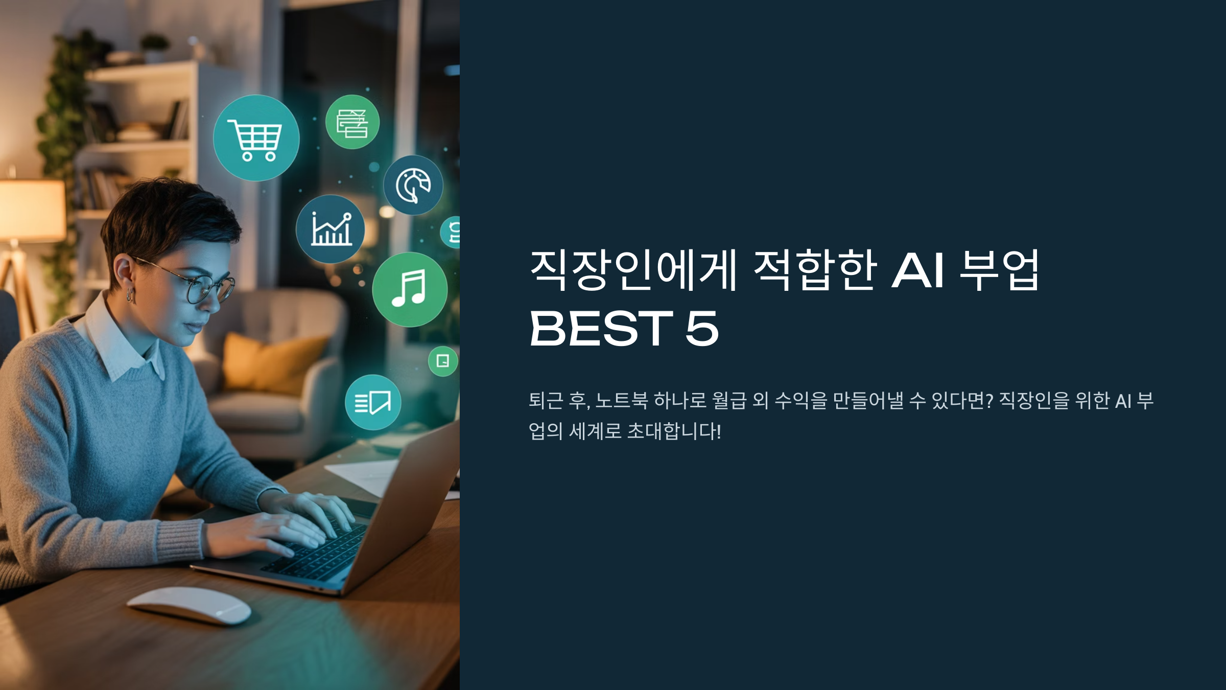 퇴근 후, 노트북 하나로 월급 외 수익을 만들어낼 수 있다면? 직장인을 위한 AI 부업의 세계로 초대합니다!