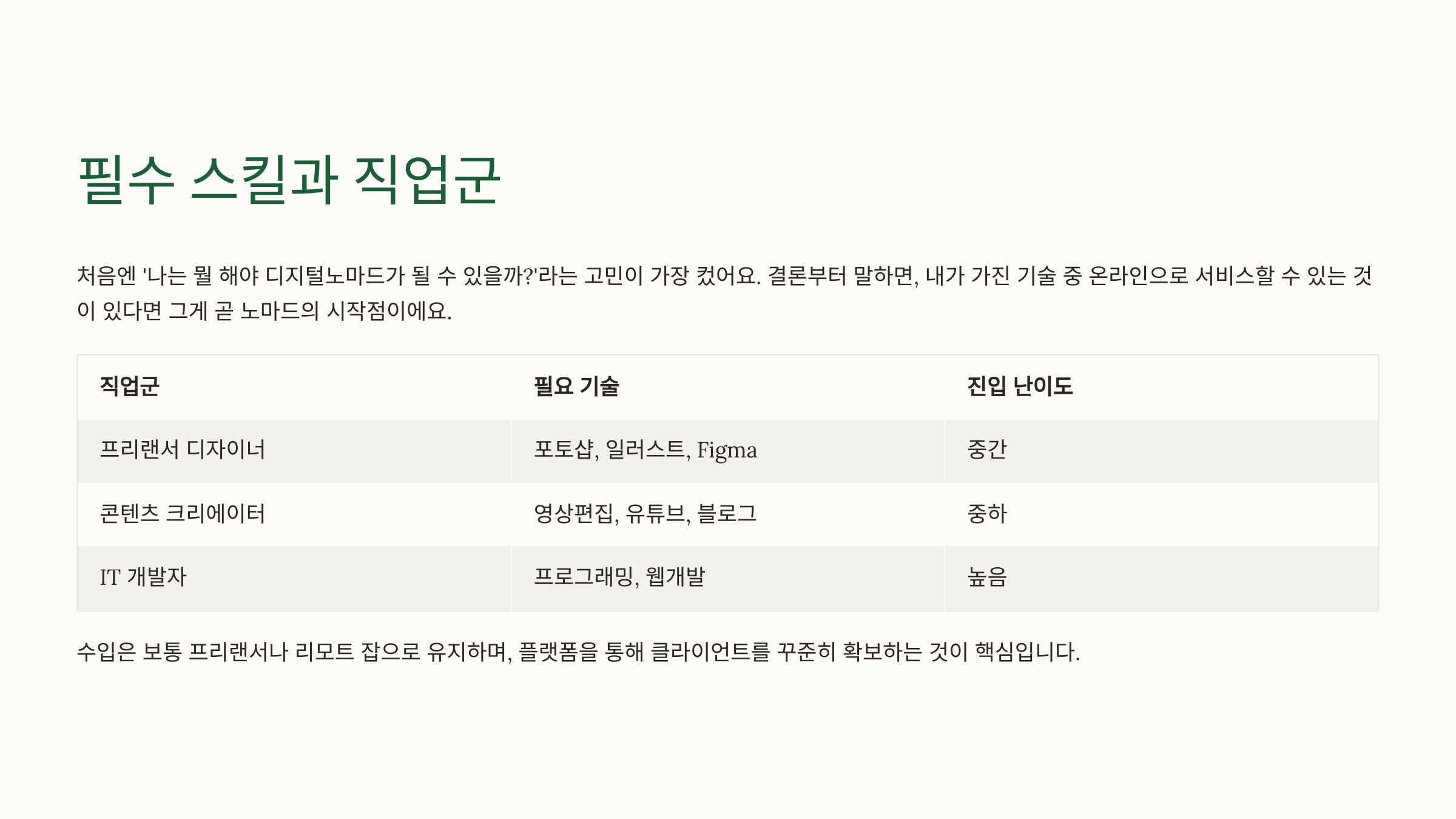 처음엔 ‘나는 뭘 해야 디지털노마드가 될 수 있을까?’라는 고민이 가장 컸어요. 결론부터 말하면,