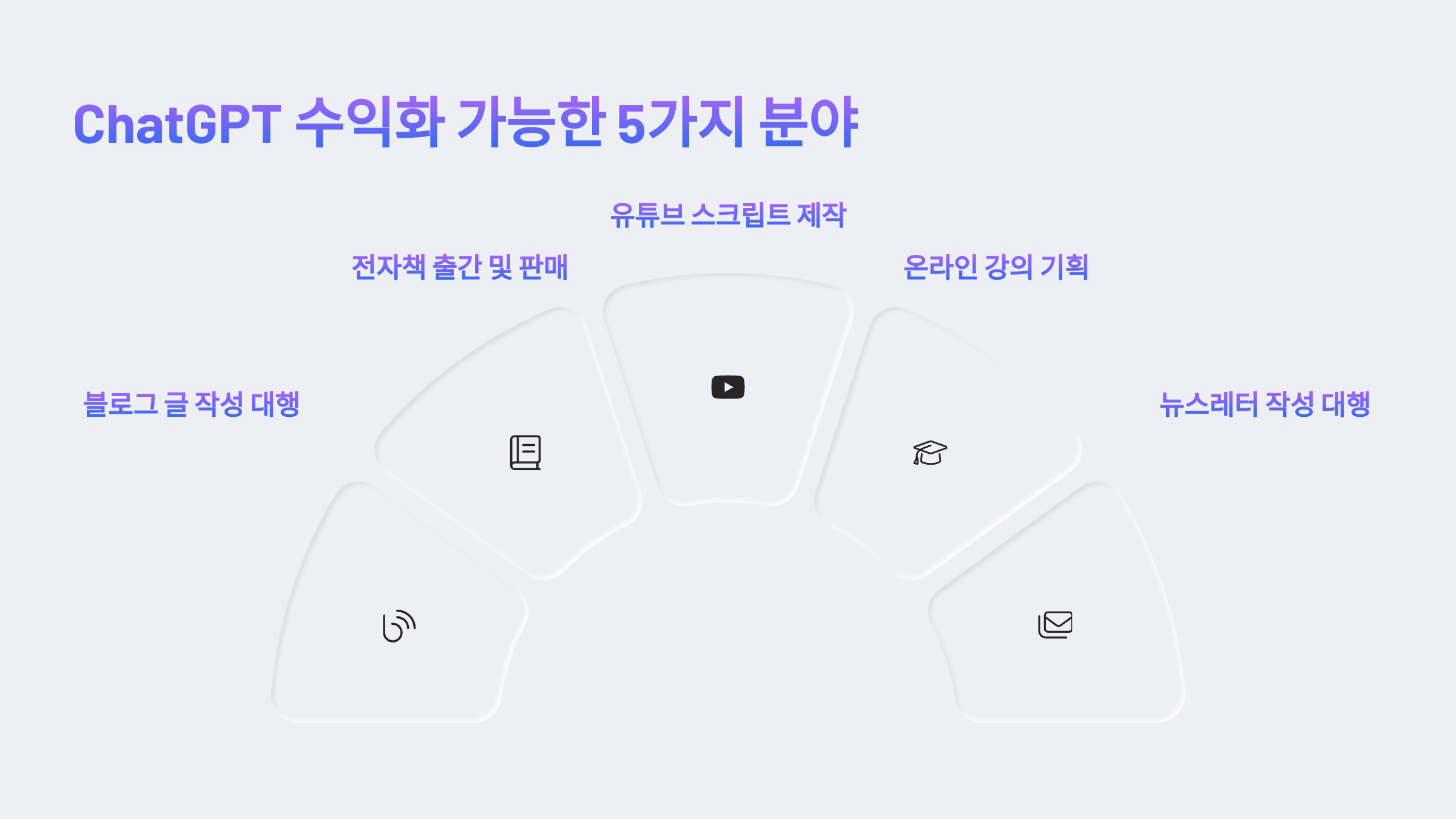 ChatGPT로 수익을 낼 수 있는 방법은 정말 다양하지만, 제가 특히 추천하는 5가지를 소개할게요.