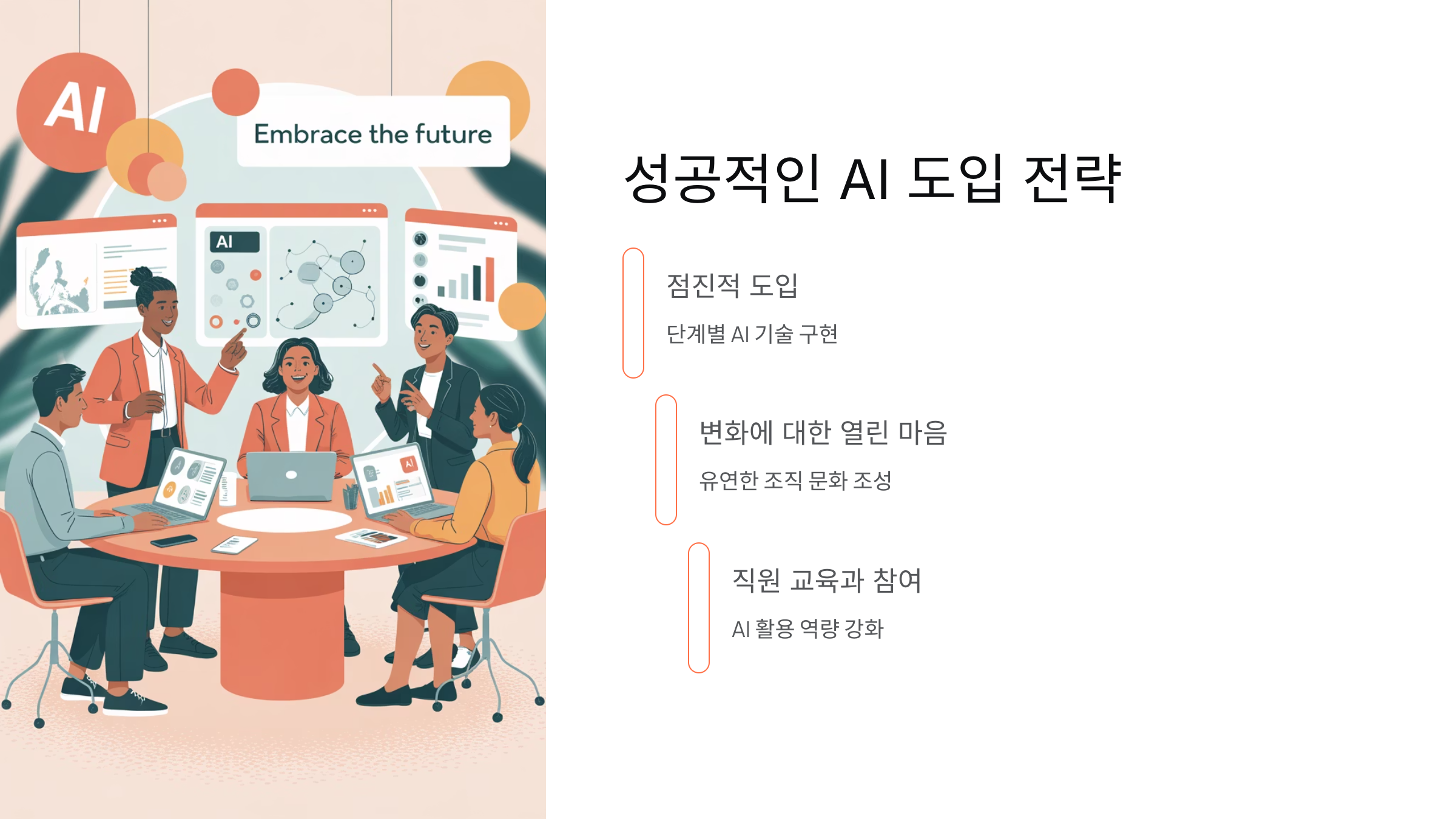 - AI 도입은 점진적으로 이루어져야 합니다.