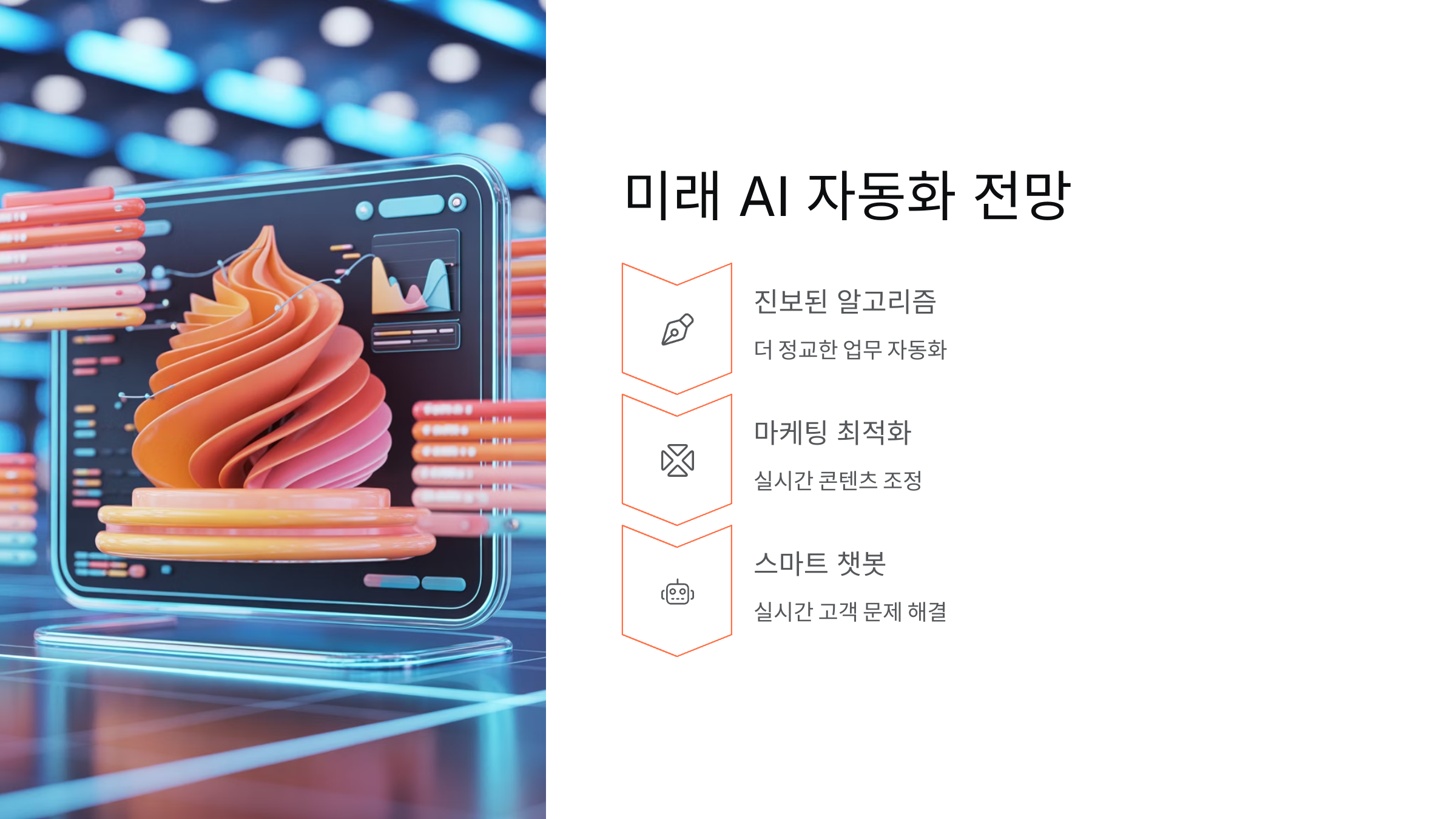 AI 업무 자동화의 미래는 더욱 더 흥미롭고 빠르게 발전할 것입니다. 기업들은 점점 더 진보된 알고리즘과 AI 도구를 활용해, 업무를 더욱 정교하게 자동화하고, 고객의 요구에 실시간으로 반응할 수 있게 될 것입니다.