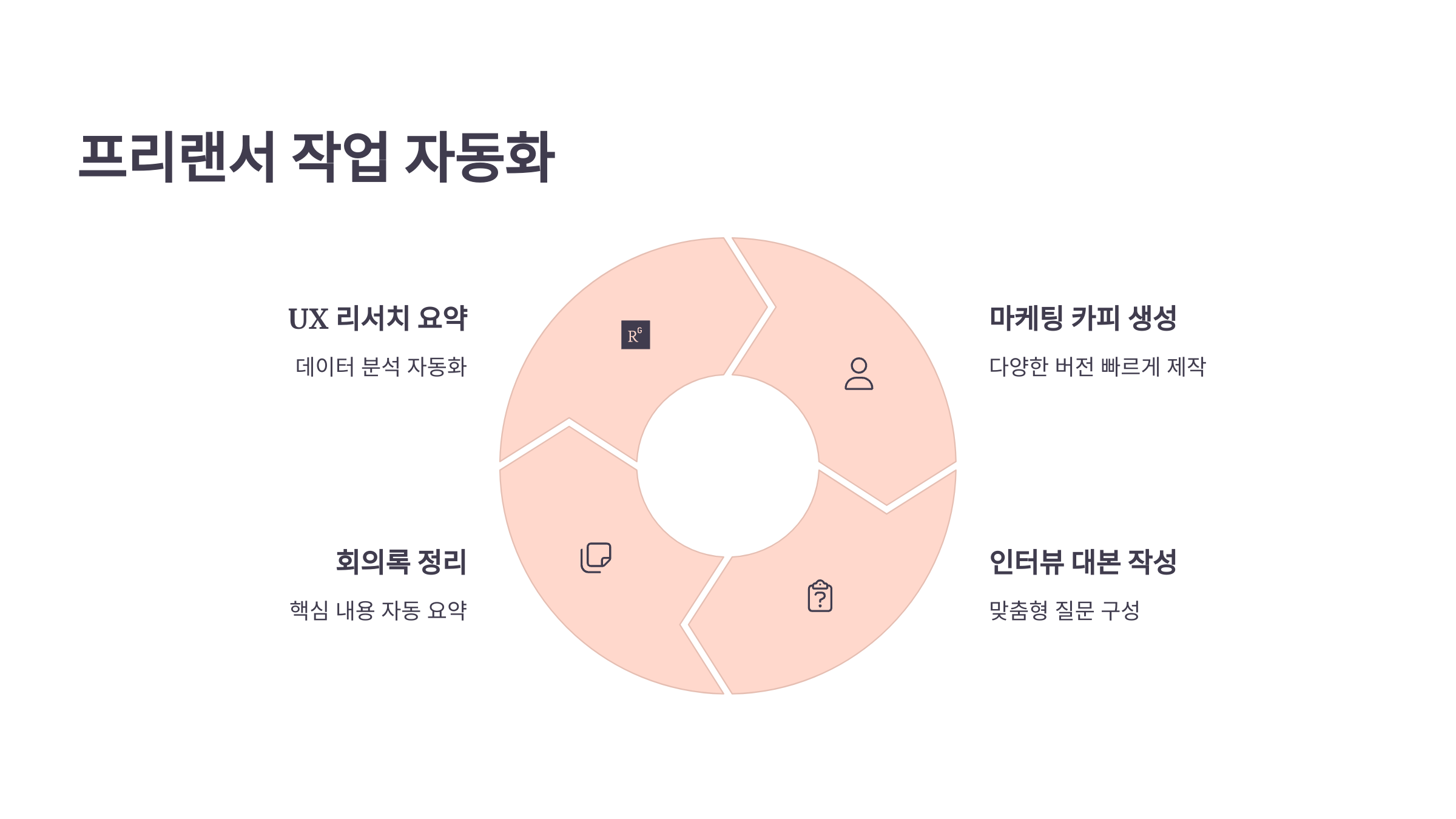 디자이너, 마케터, 기획자 등 다양한 분야의 프리랜서들이 ChatGPT를 사용해서 반복 업무를 줄이고 있어요. 단순 자동화 툴을 넘어서, 브레인 역할로 활용하고 있는 거죠.