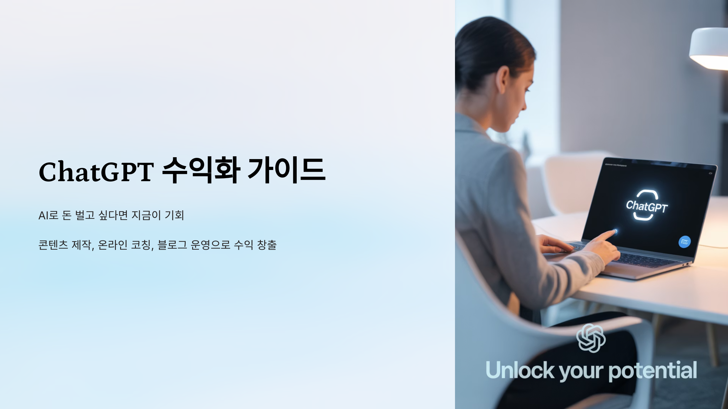 AI로 돈 벌고 싶다면? 지금이 기회입니다. ChatGPT를 활용한 스마트한 수익화 전략을 공개합니다.